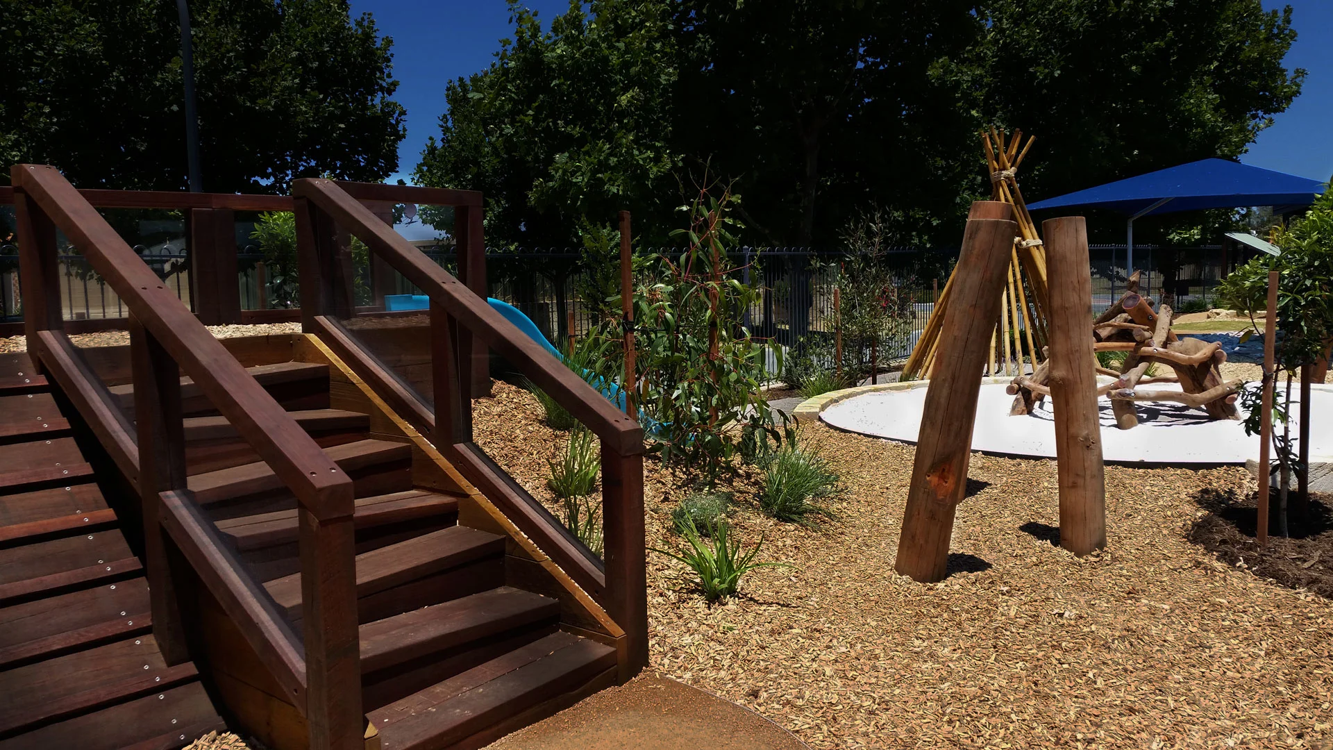 As landscape architects it is hardly surprising that we have an agenda to promote interaction with more natural elements. We create spaces using plants, rocks, timber, as many found natural elements as we can safely use. And we don’t do this in a vacuum. All of our designs are backed with research, analysis, experience, and a comprehensive approach to how each element will benefit the children using the space. All of this is situated within a framework of necessary pragmatics - budget, site lines, safety standards and so on.